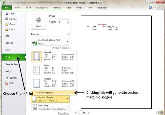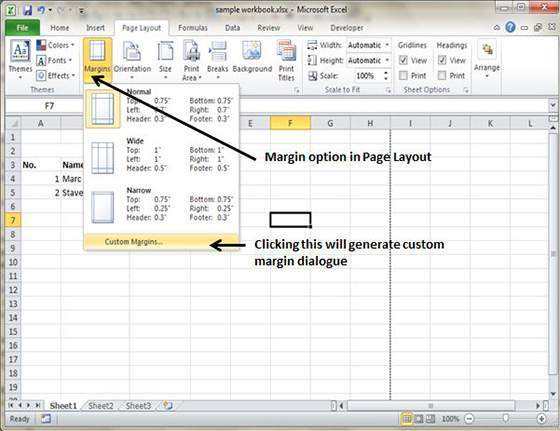 • Choose the Page Layout, followed by Page Setup, Margins drop-down list. Here you can select from options like Normal, Wide, Narrow or the custom settings.