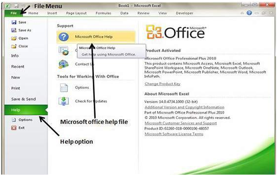 If you wish to get more help with MS Excel from Microsoft, then simply press F1 key or go to the File followed by Help, Support and Microsoft Office Help.