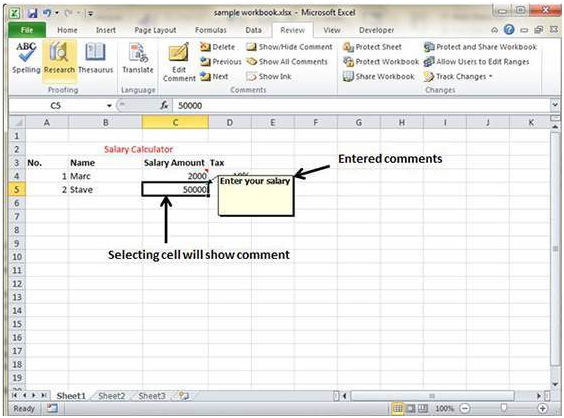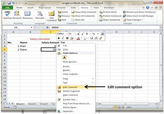 How To Insert Comments In MS Excel 2010