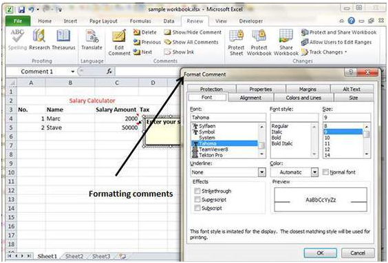 Formatting of comments is possible in MS Excel. Give a right click on the cell followed by Edit Comment, Select Comments, Right Click on it and finally Format Comments. Formatting allows users to change color, font, style and other attributes of the comment.