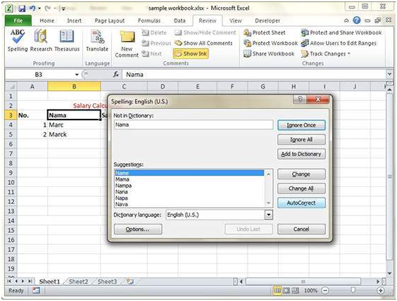 • After the checking, the worksheet if spell checker finds incorrect words then it will display the Spelling Dialogue with suggested options.