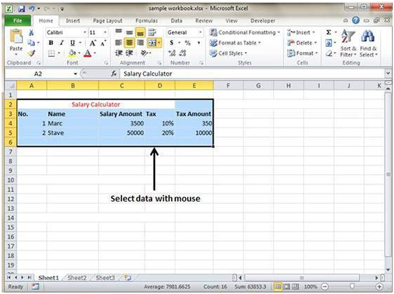 Select with Mouse – Simply drag the mouse over the cell or data you want to select.