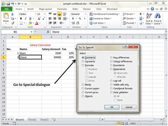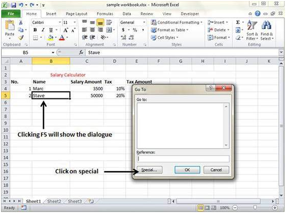 Now, click on the Special button in the dialogue box and it will allow you to select current region from the radio buttons. Give a final click on ‘OK’ and the requested region will be selected.