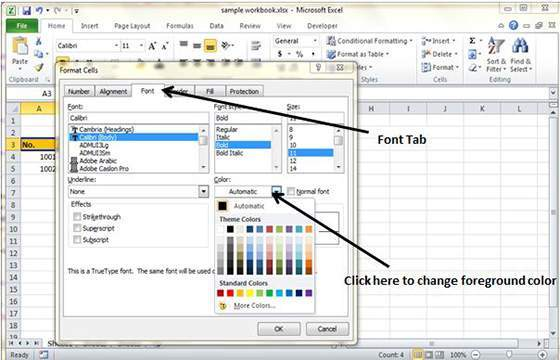 Users can even change the foreground color by selecting the cell and right click, followed by Format cells, Font Tab and Color.